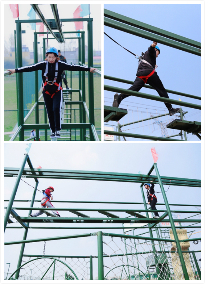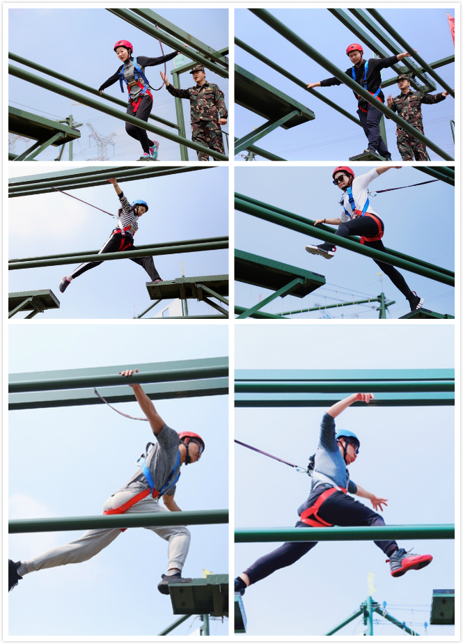 隊員們在教練的帶領下,群策群力,團結(jié)協(xié)作,圓滿完成了穿越電網(wǎng)、高空斷橋、同心圓、軍事體驗等訓練環(huán)節(jié)。項目進行中,既挑戰(zhàn)了個人極限,又彰顯了團隊魅力。