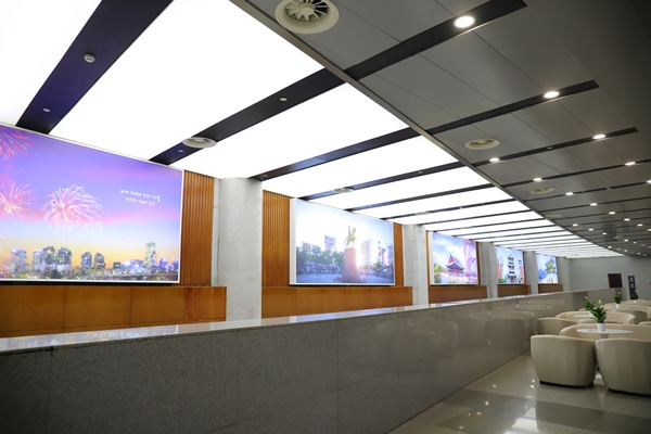 場館提升改造過程中,項目管理人員與現(xiàn)場50多名工人日夜忙碌、并肩作戰(zhàn),開足馬力推進會議中心燈光亮化和LED顯示屏安裝工程。一手搶抓工期,科學(xué)制定施工方案,對施工單位明確獎懲條款,在充分利用時間的同時合理套搭施工,提高施工效率;一手與施工單位簽訂安全生產(chǎn)責(zé)任狀,定時定點巡查安全質(zhì)量隱患,確保安全“零事故”和質(zhì)量“高品質(zhì)”。截止目前,項目現(xiàn)場安裝完成3塊LED顯示屏,二樓會議大廳頂部噴淋改造,舞臺燈具槽、吊頂及會場燈具安裝均已完成,中心休息區(qū)及貴賓室升級等工程已順利完工。為做好全館保潔、室外的環(huán)境衛(wèi)生等工作,東方物業(yè)自4月30日接到通知后,即刻行動,清洗噴泉池及室外廣場,修理噴水泵及廣場石材等,并配合做好改造后的全館保潔、零星維修、現(xiàn)場安保、音響及大屏調(diào)試等工作。