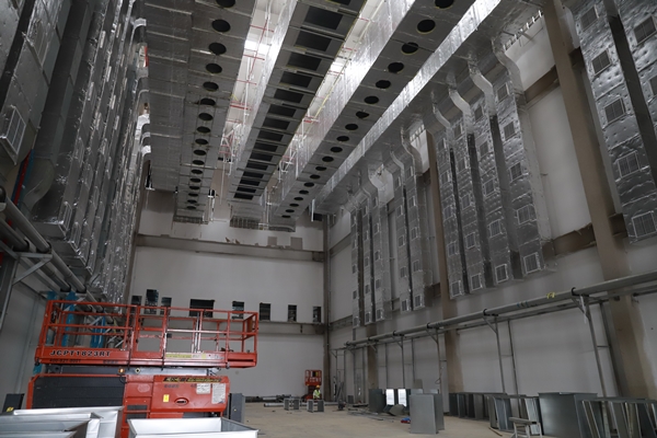 在總承包中鐵建工集團建筑安裝有限公司的現(xiàn)場負責人的引導下,東方集團一行人參觀學習了該項目的電極棟、組裝棟、活性棟等主生產(chǎn)廠房以及其他輔助用房。項目負責人就各觀摩區(qū)域的亮點向觀摩人員作一一介紹,該工程的建筑形式為鋼結構建筑,以電極棟一層為例,天花板上部共有21個系統(tǒng)機電管線,管線布置及其復雜,為了解決管線碰撞問題,項目指揮部開展BIM管線綜合深化設計。項目部合理整潔衛(wèi)生的施工場地、醒目的標語標識牌、規(guī)范的施工工藝、文明安全的施工氛圍,給前來觀摩的人員留下深刻的印象。