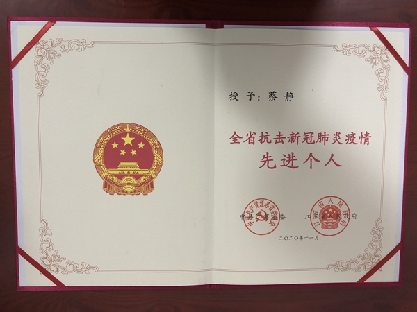 11月26日,江蘇省抗擊新冠肺炎疫情表彰大會(huì)在南京隆重舉行,會(huì)上,省委省政府表彰了一批在抗擊新冠肺炎疫情斗爭(zhēng)中涌現(xiàn)出的先進(jìn)個(gè)人和先進(jìn)集體。