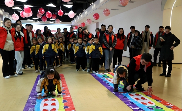 在藝術(shù)創(chuàng)作環(huán)節(jié),青年志愿者與孩子們共同繪制學(xué)雷鋒主題畫報,孩子們用絢爛的色彩和靈動的筆觸,勾勒出一幅幅生動的雷鋒形象。投壺游戲的箭矢破空聲與“手腳并用大挑戰(zhàn)”的歡笑聲此起彼伏,現(xiàn)場躍動的紅馬甲與純真笑臉,構(gòu)成新時代雷鋒精神的生動注腳。